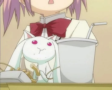 Drawn by Emiri KATŌ, Kyubey's voice actress.