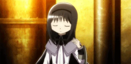Homura is first introduced in Episode 1 as a transfer student. She claims that her head is hurting, and asks to go to the nurse, knowing that Madoka is the nurse's aide. Homura is shown to lead Madoka to the nurse's office rather than Madoka leading her, which seems to put Madoka off, as she nervously shuffles with her hands and attempts to make conversation with the other girl. Homura suddenly turns on her heel and asks Madoka if she truly treasures everyone around her, and if she would ever give up the life that she had. Madoka replies that, no, she is happy with the way things are and loves everyone she knows.