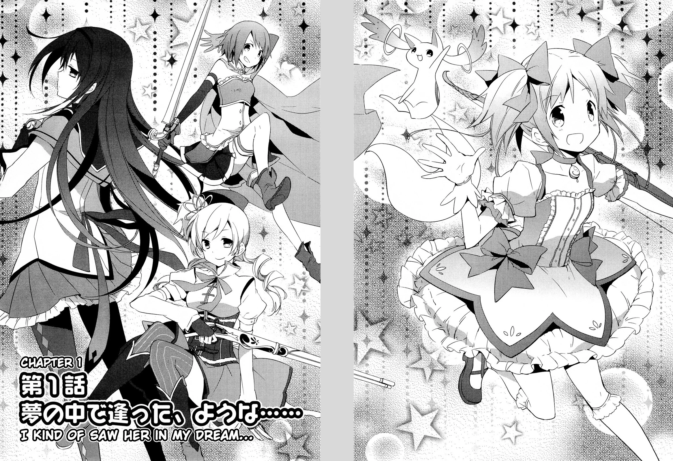 I First Met Her in a Dream... or Something (夢の中で逢った、ような… Yume no Naka de Atta, Youna...?) is the first chapter of the Puella Magi Madoka☆Magica manga.
